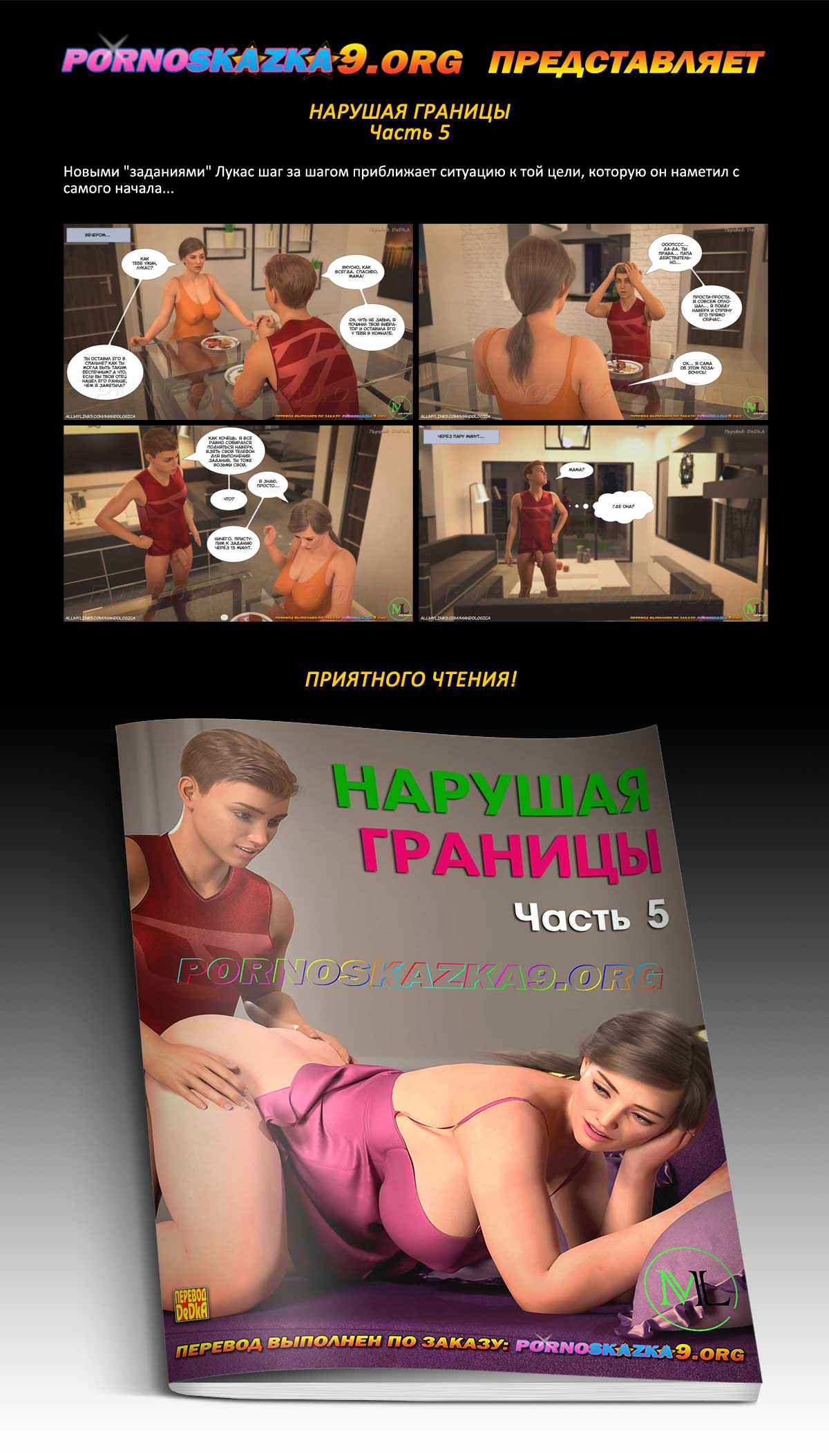 Продолжение будет переведено и опубликовано сразу после того, как MandoLogica опубликует его английскую версию на subscribestar. Скорее всего это будет в субботу или воскресенье.